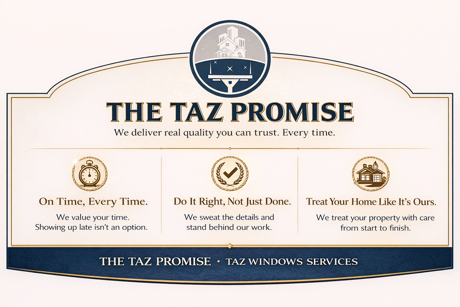 At TAZ Windows Services, we believe true quality is simple: flawless results, fair pricing, and service that feels first-class from start to finish.