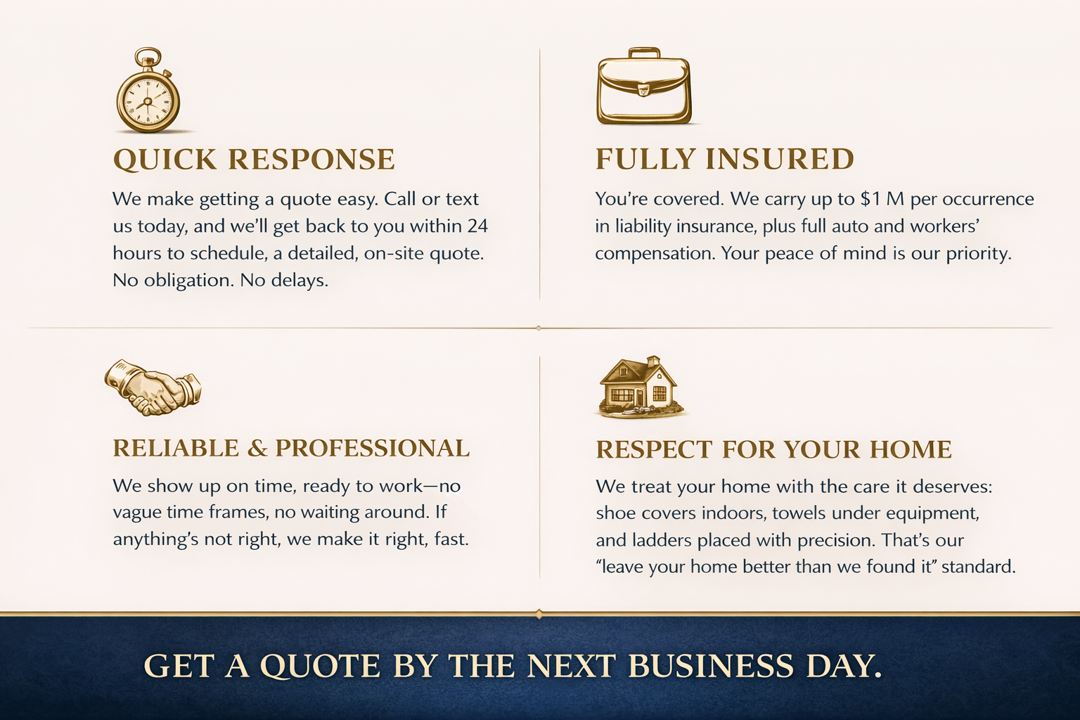 • "These guys are the real deal! I’ve had my windows done many times over the years, and I can confidently say this was by far the best job I’ve ever seen. Not only were they professional, punctual, and respectful of my home, but the quality of their work was outstanding!"